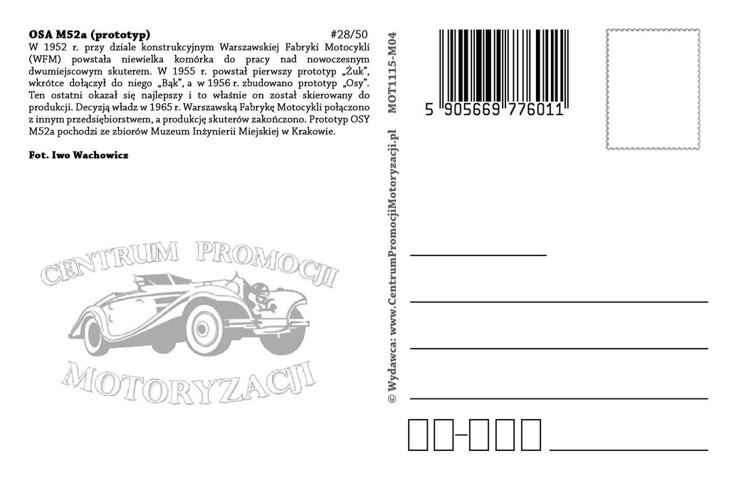 Montaż próbnej serii skuterów Osa M-50 warszawska fabryka rozpoczęła w drugiej połowie lutego 1959 r, zaś pierwsze Osy pojawiły się w sklepach w lipcu lub w sierpniu. W trzecim kwartale tego roku ruszyła produkcja seryjna.